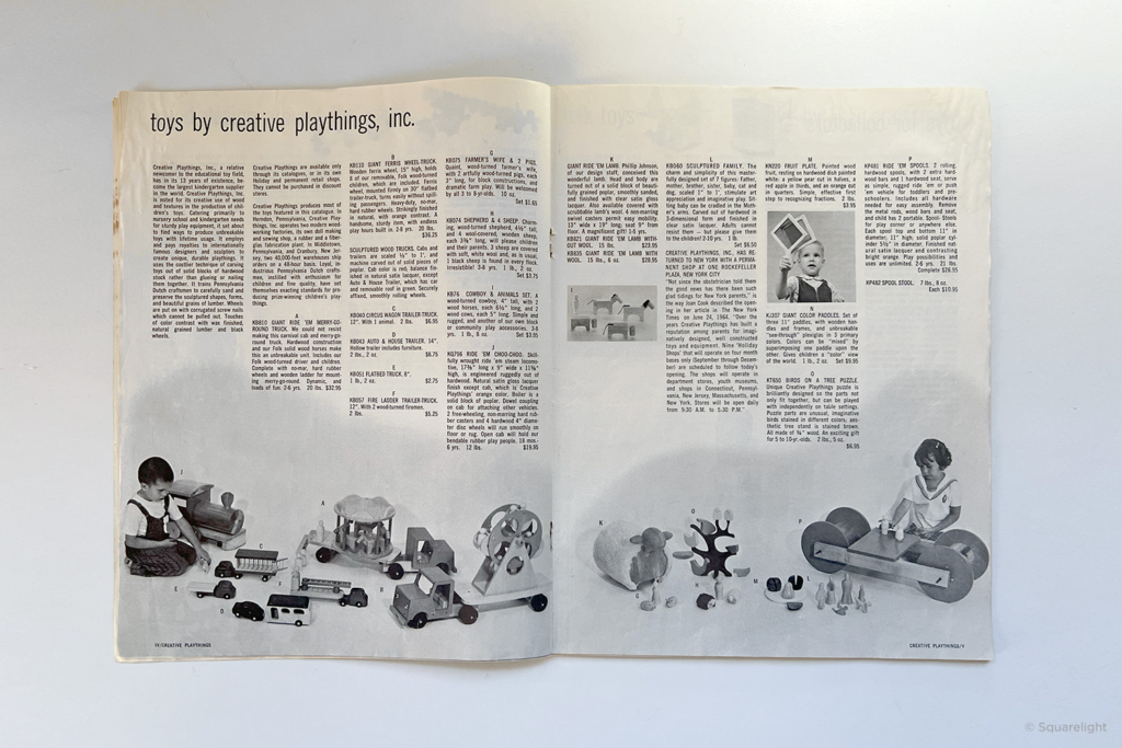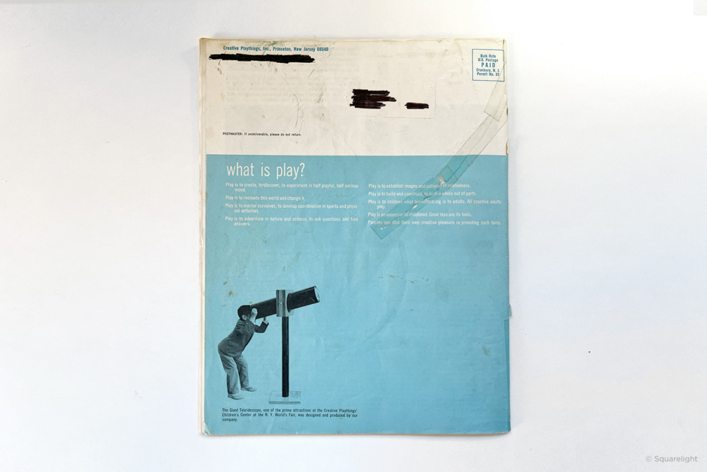 The 1964 catalog has 40-pages in black & white. I like the question on the back cover – “What is play?”