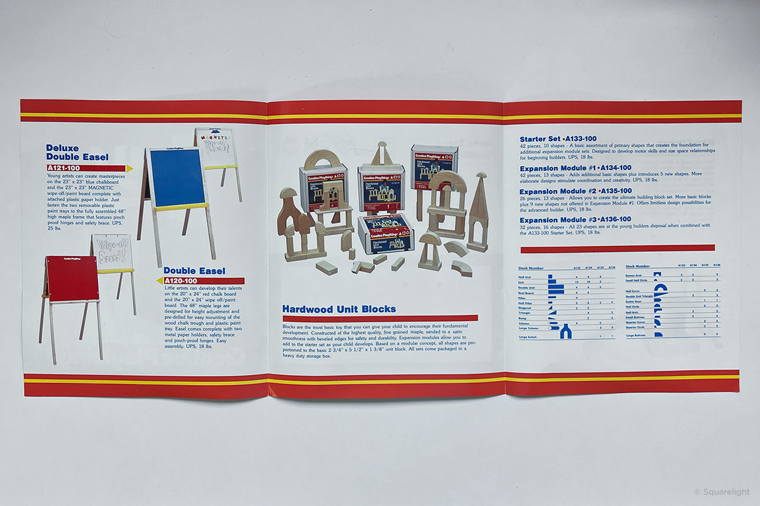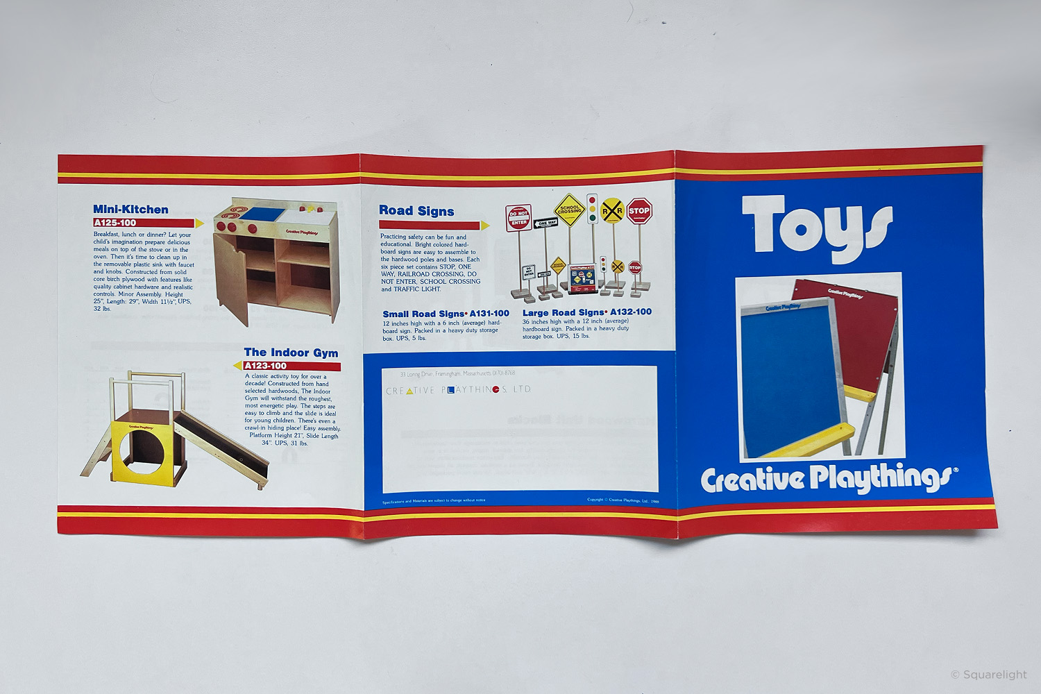 This tri-fold brochure from 1988 is the last I have found that still features toys. Later catalogs focus solely on playground equipment.