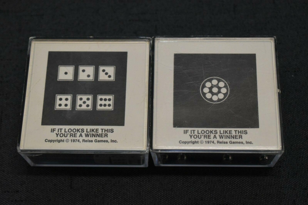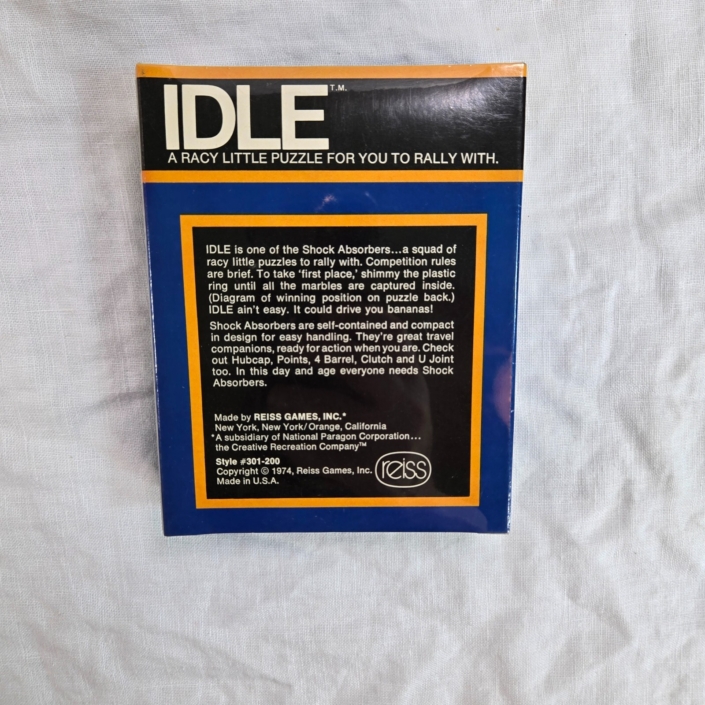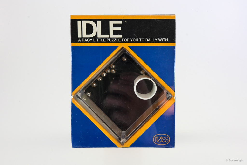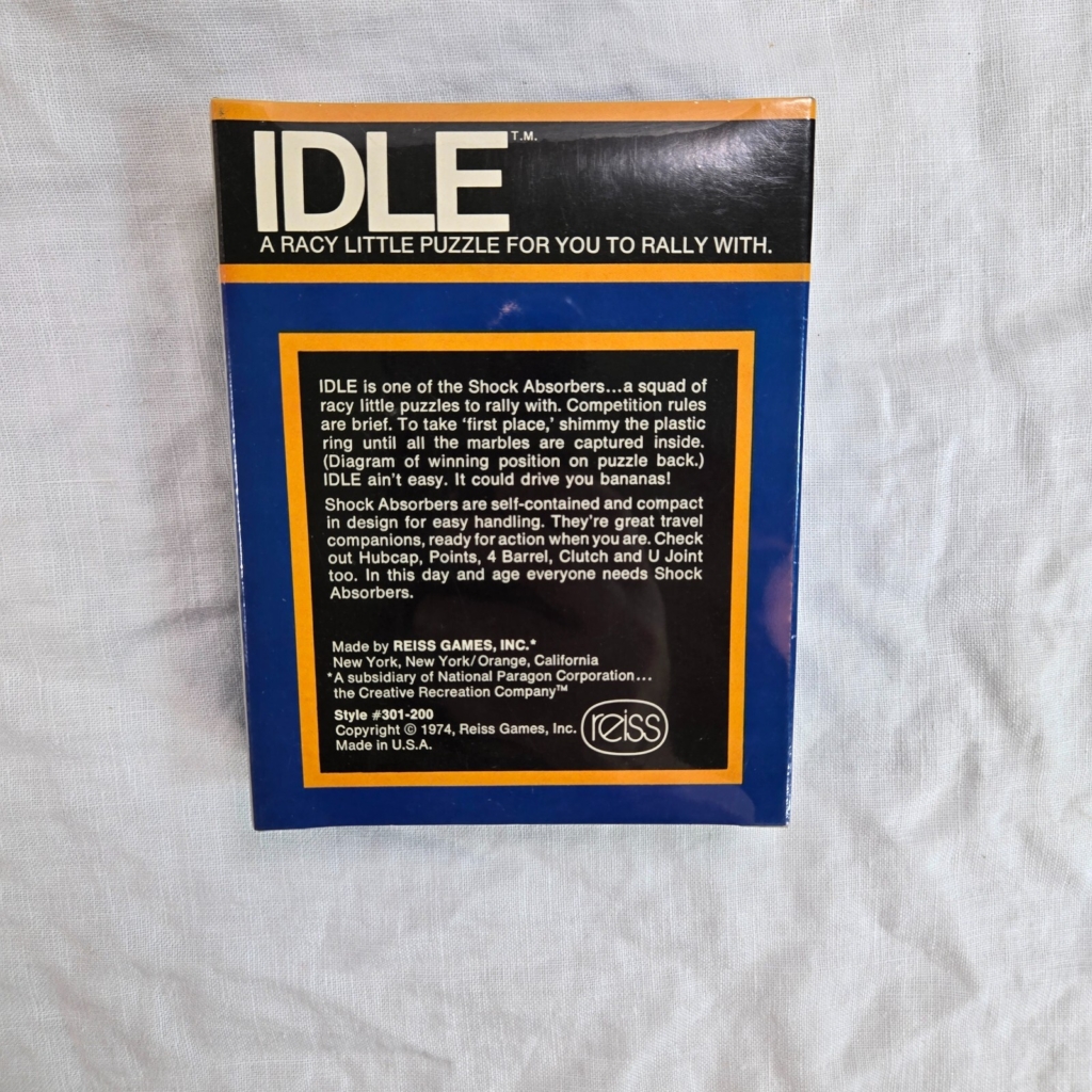 Reiss made a run of six dexterity games in 1974 called “The Shock Absorbers”. They were sturdy, self-contained games that were easy to take with you. More designs were made over the years, using different puzzles with the original names, which I never understood.